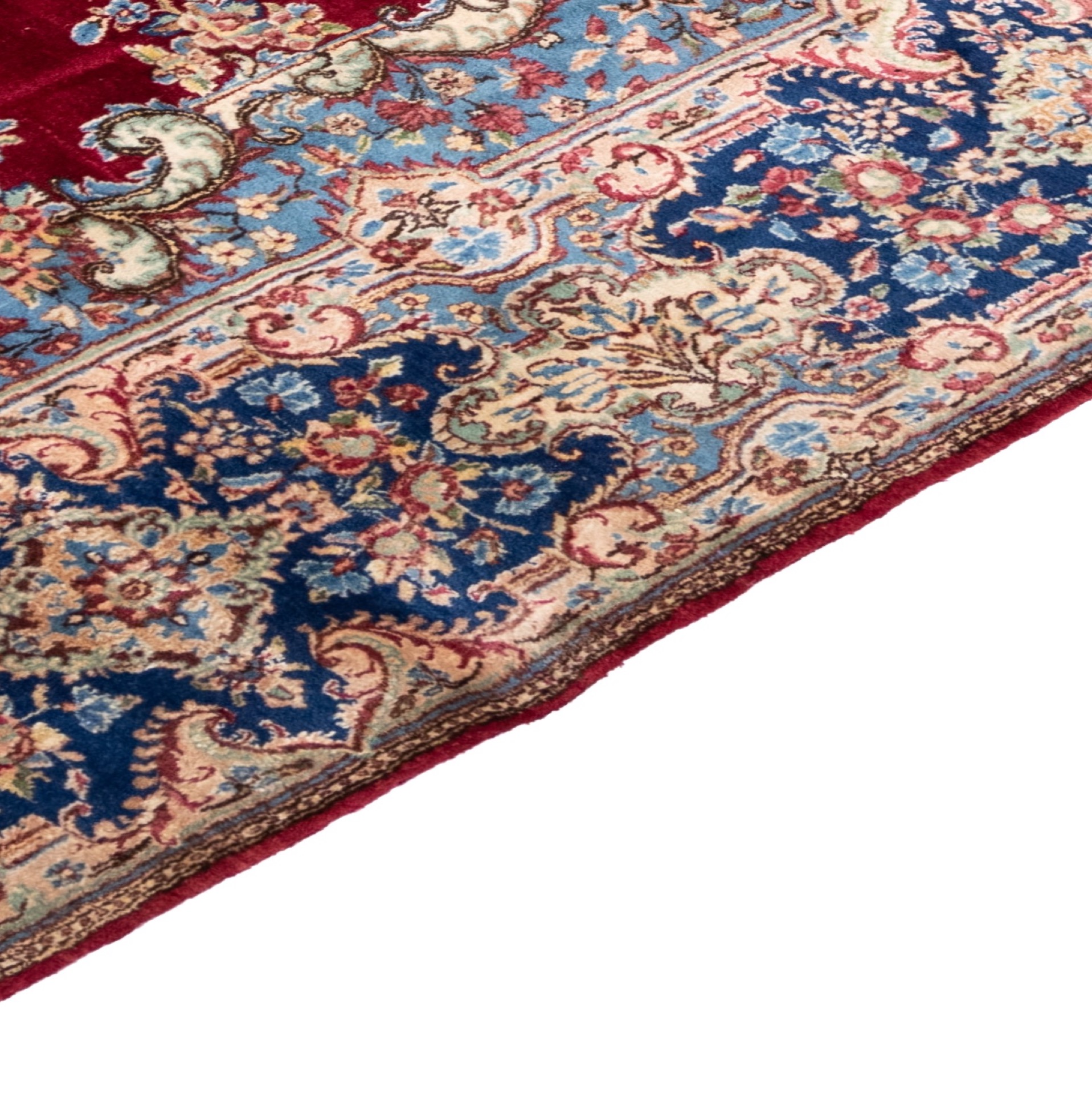 This classic Kirman Design Rug shows impressively how traditional rug knotting can transport both typical and beautiful oriental designs into the modern era. A genuine Kirman Design Rug rug stands for top quality with a good price-performance ratio from the oriental city of Kirman Design Rug, which has been a centre for rug manufactures since the 4th century on the important trade route to India. This Kirman Design Rug is knotted from pure sheep´s wool and shows with its classic ornamentation and clear colours that oriental rugs really do suit every ambience. Note: The name refers to the design style/pattern tradition and does not indicate the country of manufacture.