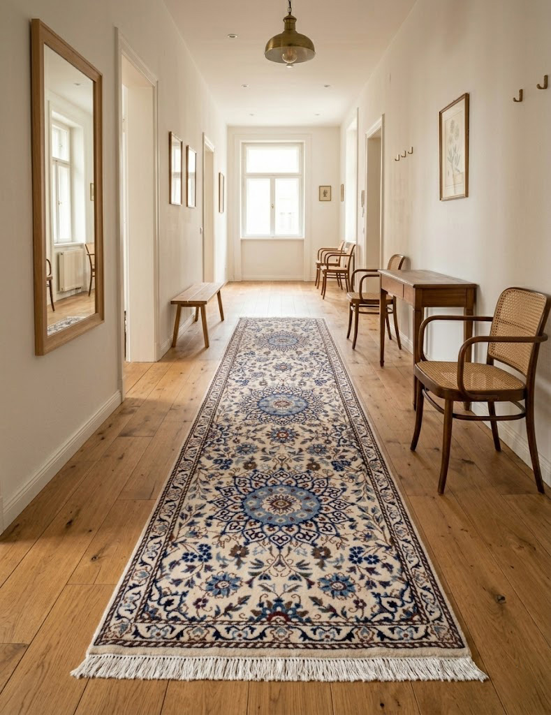 Für glatte Böden wie Parkett, Laminat oder Fliesen empfehlen wir eine passende Antirutsch-Unterlage. Sie sorgt für besseren Halt und schont Teppich und Boden.