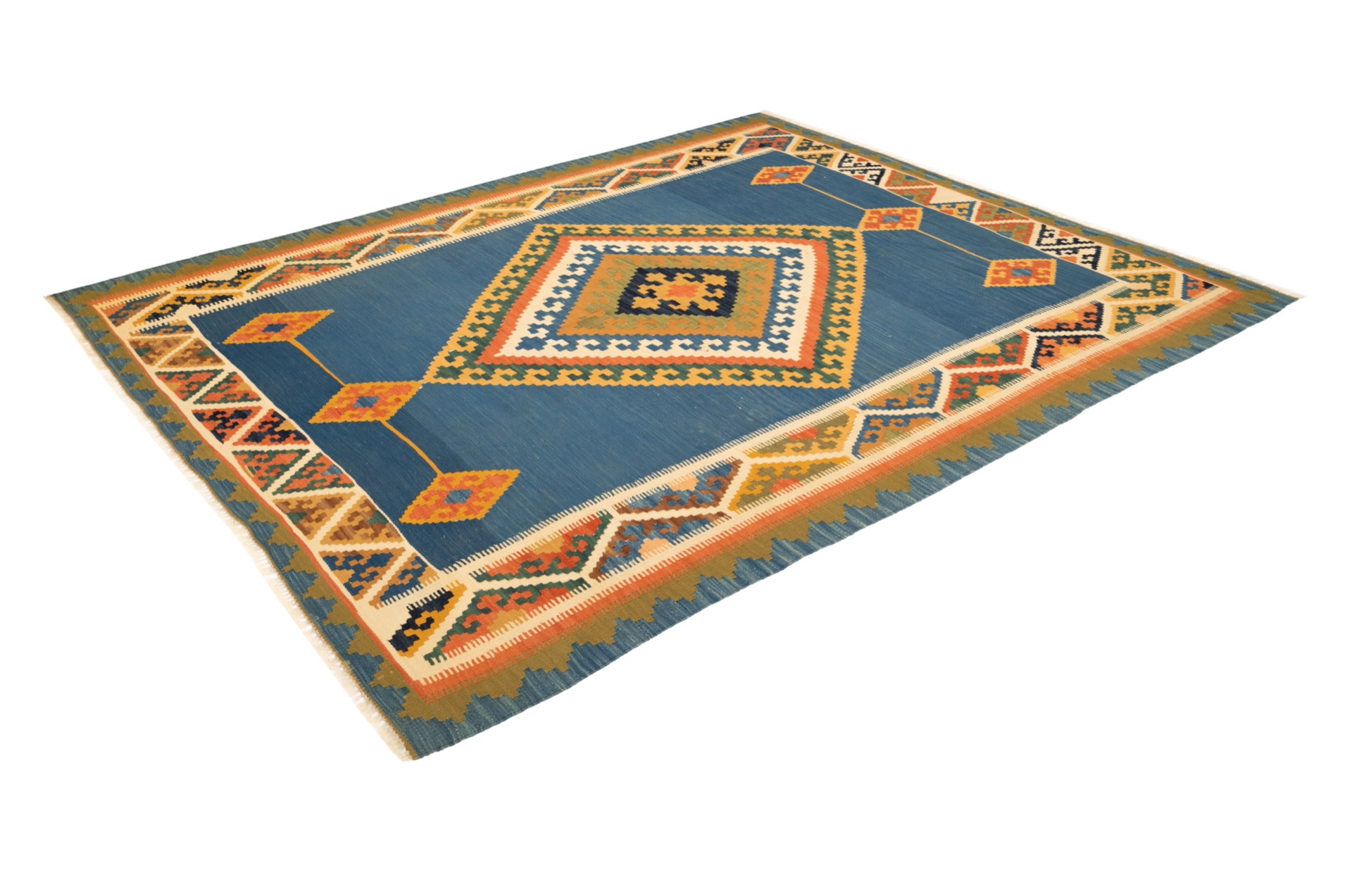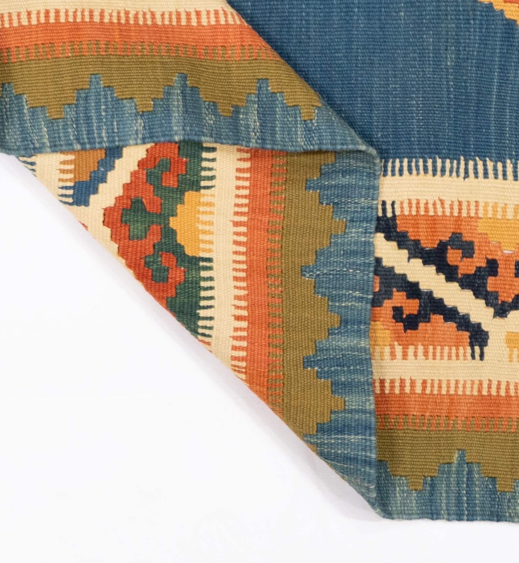Kelim tapijten zijn niet alleen een constant onderwerp voor puristen en naturalisten. De kelim wordt ook steeds populairder in moderne interieurs. De natuur staat hier hoog in het vaandel, want deze kelim is gemaakt van 100% handgesponnen hooglandwol die is geverfd met natuurlijke plantaardige verfstof. Kelim tapijten worden altijd met de hand geweven tot een zeer plat weefsel op een groot weefgetouw. Kelimtapijten kunnen dus aan beide zijden worden gebruikt. Kelims hebben een zeer typisch, handgemaakt uiterlijk en dus een kenmerk dat duidelijk verschilt van andere soorten tapijt.