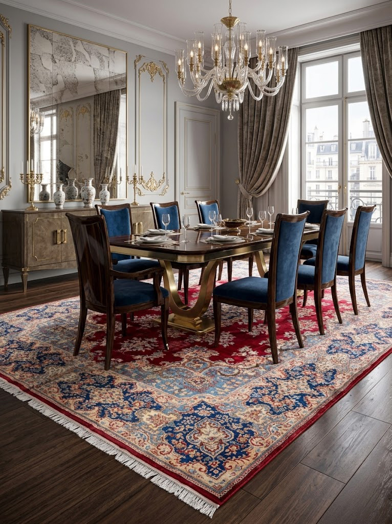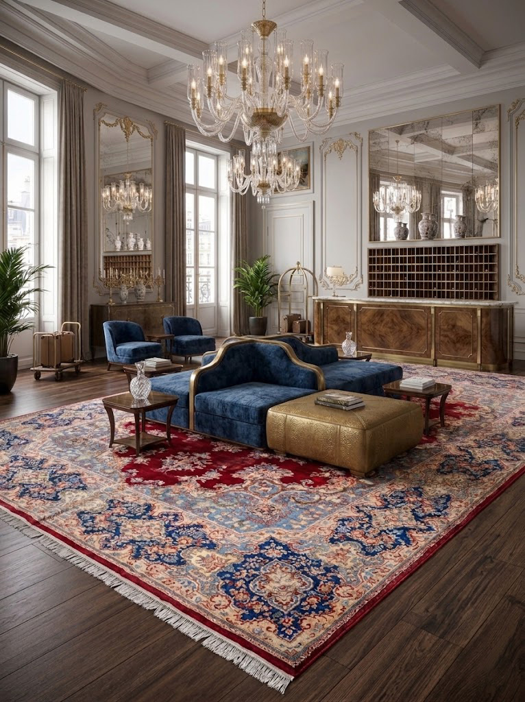 Je nach Größe erfolgt der Versand per Paketdienst oder Spedition. Der Teppich sollte nach dem Auspacken ausgerollt werden – kleine Falten verschwinden nach kurzer Zeit von selbst.