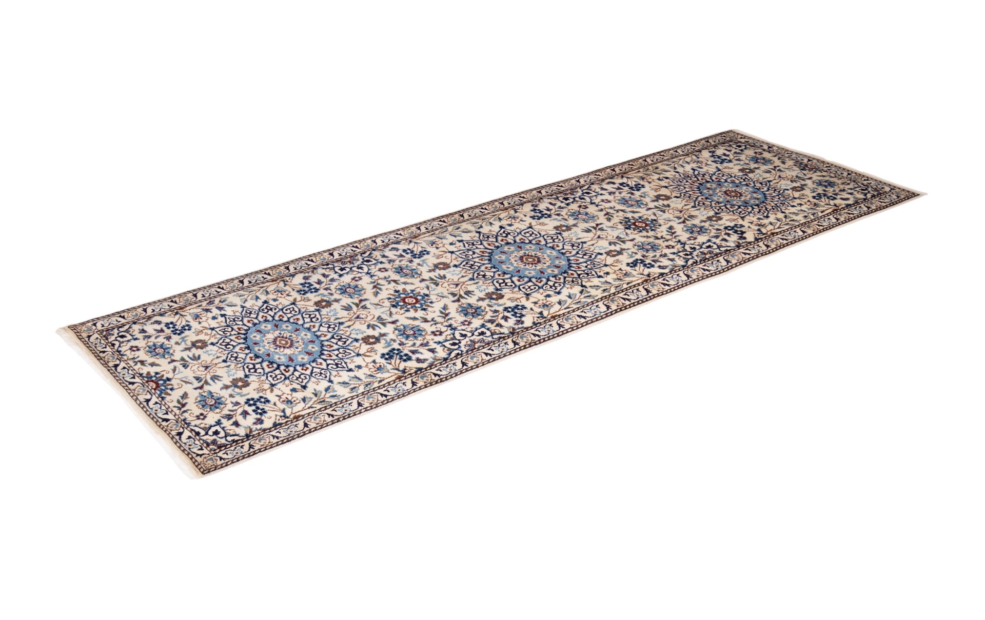 Refurbished & Hochwertig: Entdecken Sie die Schönheit traditioneller Handwerkskunst neu! Unsere handgeknüpften Teppiche vereinen zeitlose Eleganz und hochwertige Verarbeitung. Jedes Stück wird sorgfältig restauriert und neu aufbereitet – gewaschen, geprüft und in bestem Zustand, um Ihr Zuhause mit einzigartigem Stil zu bereichern. Was bedeutet „refurbished“? Diese Teppiche haben vielleicht kleine Schönheitsfehler – leichte Abnutzung an den Kanten oder Fransen, minimale UV-Licht-Veränderungen – aber lassen Sie sich davon nicht täuschen! Sie sind von der Beschaffenheit und Qualität einem neuen Teppich nahezu ebenbürtig. Jedes Detail wird mit Liebe zum Handwerk gepflegt, sodass Sie einen Teppich erhalten, der nicht nur robust und langlebig ist, sondern auch den Charme und die Geschichte des Originals bewahrt. Ihre Vorteile: Hochwertige Handwerkskunst: Jeder Teppich wurde in traditioneller Handarbeit gefertigt und bietet langlebige Qualität. Refurbished wie neu: Sorgfältige Aufbereitung bringt diese Teppiche auf ein Niveau, das einem neuen Teppich sehr nahekommt – und das zu einem unschlagbaren Preis. Einzelstücke mit Charakter: Jedes Exemplar erzählt seine eigene Geschichte und bringt eine einzigartige Atmosphäre in Ihr Zuhause. Greifen Sie jetzt zu und verleihen Sie Ihren Räumen das gewisse Extra! Diese handgeknüpften Schmuckstücke sind nicht nur Dekoration, sondern ein Statement für Stil, Qualität und Nachhaltigkeit. Jetzt zugreifen und handgeknüpfte Exzellenz zum besten Preis erleben! Dieser Teppich gehört zur Gruppe der Nain-Teppiche, die weltweit als die besten und feinsten Orientteppich betrachtet werden. Grund hierfür ist die besonders hohe Knotendichte und die ausgesprochen feine Korkwolle, die aus dem weichen Nackenbereich bei der ersten Schur der Schafe genommen wird. Dadurch ist die Wolle sehr fetthaltig und entsprechend schmutzabweisend. Die dünnen Fäden werden typischerweise zu floralen Mustern verknüpft mit ausgeprägtem Mittelmedaillon, wie hier gut zu sehen. Hinweis: Die Bezeichnung steht für den Designstil bzw. die Mustertradition und ist kein Hinweis auf das Herstellungsland.